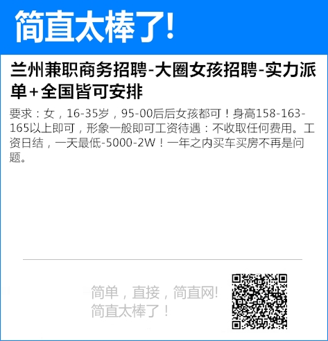 兰州兼职商务招聘-大圈女孩招聘-实力派单+全国皆可安排(若干人)